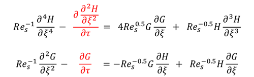 本研究首先以无限大转静系圆盘为研究对象,基于自相似流速分布假设,构建了包含时间导数项的层流自相似解主控方程: