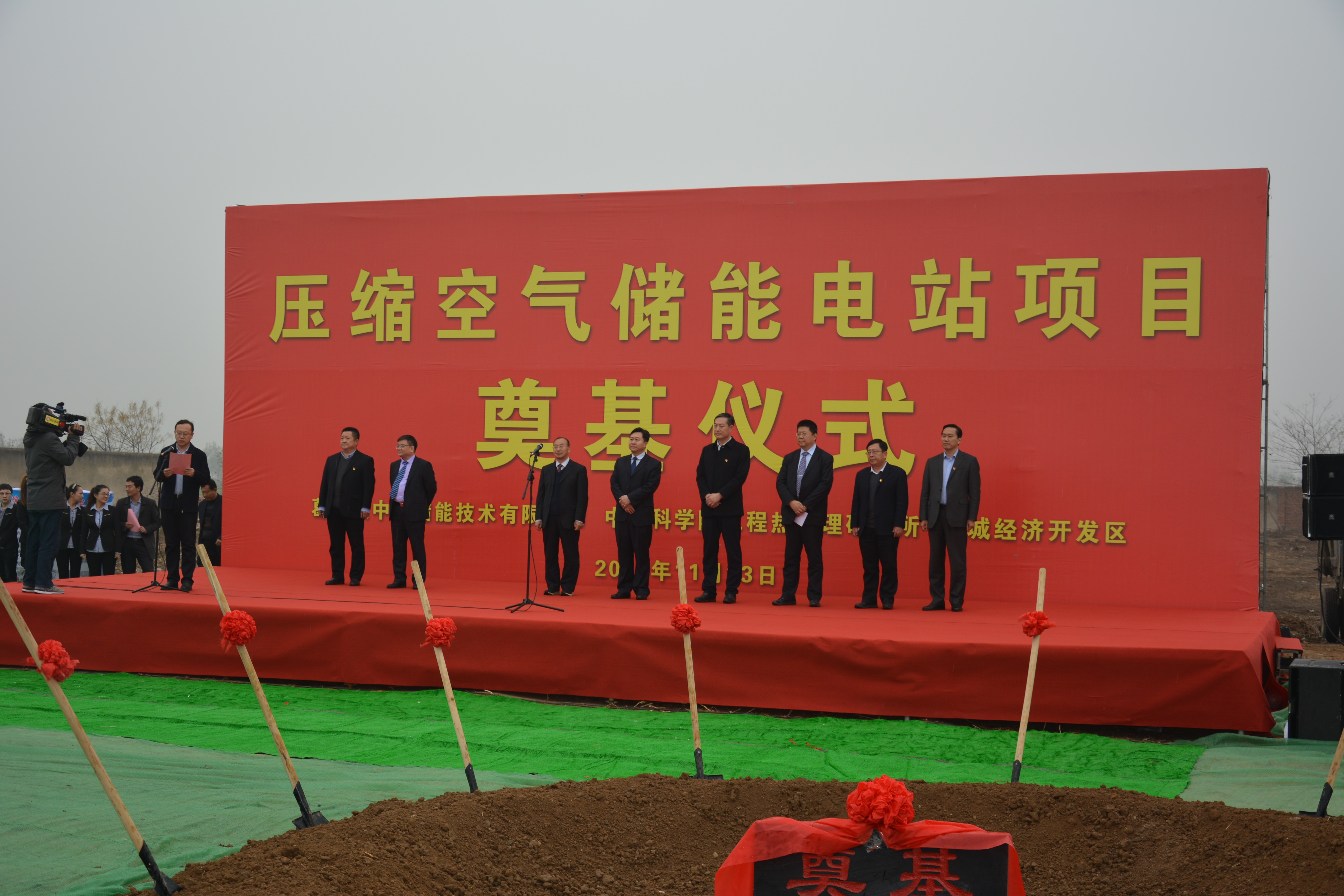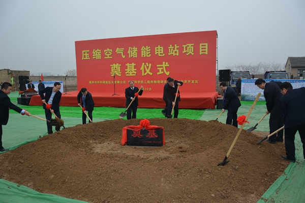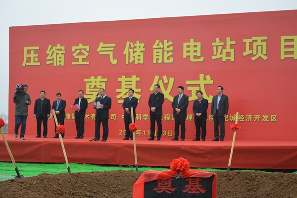 山东省肥城市市长殷锡瑞、中科院工程热物理所副所长吕清刚、葛洲坝集团装备工业有限公司副总经理陈大明、葛洲坝中科储能技术有限公司总经理邹宏程等领导到场致辞。来自肥城市经开区、发改局、电网公司、肥城市精制盐厂、电力工程咨询院以及项目建设、施工等单位领导和嘉宾出席了项目开工仪式。