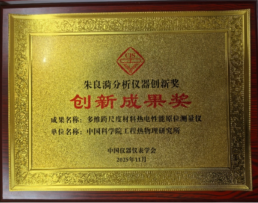11月7日,2025年度中国仪器仪表学会“朱良漪分析仪器创新奖”正式发布,研究所独立完成的《多维跨尺度材料热电性能原位测量仪》荣获2025年度“创新成果奖”。