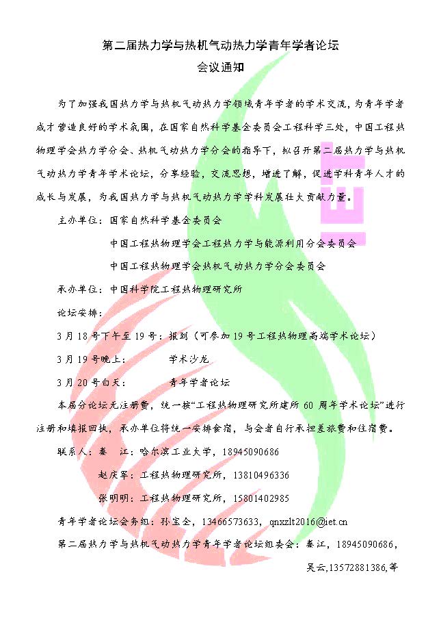 第二届热力学与热机气动热力学青年学者论坛----中国科学院工程热物理研究所