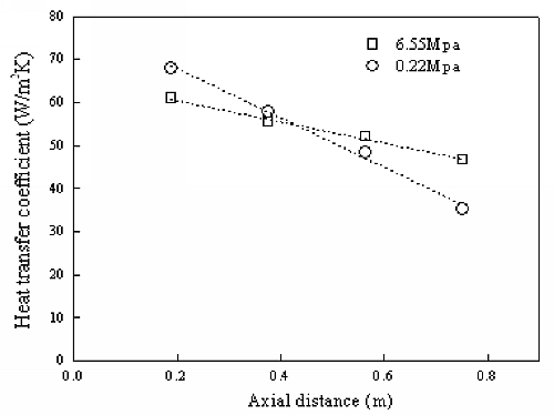 图1 不同压力下的入口距离对空气-填充床相间传热系数的影响
