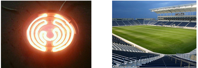 为什么会是这样呢?举一个日常生活中的例子大家就能很好地理解这一点了。大家应该都用过电炉子,一个1000瓦的电炉子直径只有十几个厘米,如图1所示。当它通电工作的时候,由于发热量集中,温度高,表面炽热发红,相信沒有人敢伸出手摸它的发热表面。即使用几台大功率空调来冷却它,使得房间气温都冷得如寒冬一般了,电炉子却依旧会炽热滚烫,用手依然不敢触摸。但是如果你把1000瓦电炉子的热量分摊到一个足球场大小的巨大面积上的话,如图2所示,那么你根本用不着空调去冷却它,甚至你躺在上面睡大觉都不会有任何问题,这就是热量集中和分散的区别。显然,从热量集中的热源取热比从热量分散的热源取热要麻烦得多。 同样,热输运环节也是要被高度关注的传热环节。取出热以后如何在散热器内部实现高效率地大功率热量的热输运,也就是如何能够减小热量从散热器取热表面传递到散热器对外散热的外表面(肋片表面)的过程中的热输运热阻,这也是非常关键并具有挑战性的。就好像城市道路交通运输一样,只有道路畅通沒有追尾剐蹭等交通事故造成车辆堵塞道路,通过的车流量才能大,但要做到这一点,在现实生活中并不容易。热流的输运也是如此。